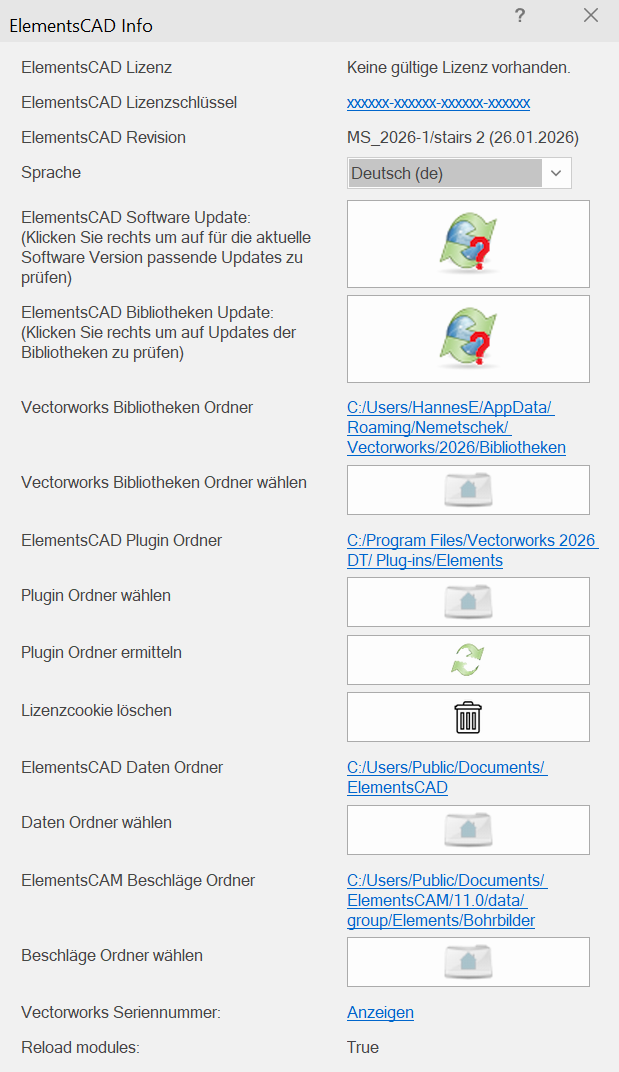 Beachten Sie bitte, dass ab Vectorworks 2026 die ElementsCAD Plug-ins aktiviert werden müssen.